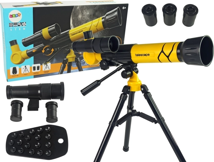 Odkrijte nočno nebo s tem preprostim otroškim teleskopom – idealen za prve korake v astronomijo. Ponuja povečave 20×/30×/40×, praktičen nosilec za telefon za fotografiranje, vgrajen kompas za orientacijo in lahek, prenosni stativ za udobno opazovanje doma in na prostem.