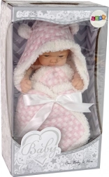 Lutka je oblečena v topel rožnat povojček z belo mašnico. Ima gibljive roke, kar povečuje interaktivnost in daje igri bolj realističen videz. Izdelana je iz certificiranih materialov visoke kakovosti, ki zagotavljajo varnost in dolgo življenjsko dobo igrače.