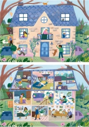Uživajte v zabavi za otroke in starše z dvojnim paketom sestavljank blagovne znamke EDUCA. Vsaka sestavljanka ima 100 kosov in po sestavljanju meri približno 40 × 28 cm. Tema »Outside, Inside hiša« otroke popelje skozi življenje v hiši od zunaj in od znotraj ter spodbuja razvoj domišljije, koncentracije in fine motorike.