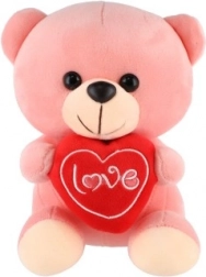 Ta rožnati medvedek drži rdeče srček z napisom »love« in takoj osvoji srca malih in velikih. Mehka plišasta tkanina in skrbno izvezeni detajli ga naredijo varnega in prijetnega spremljevalca za vsakodnevno crkljanje.