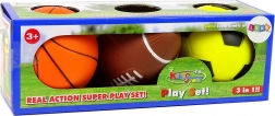 Ta komplet 3-v-1 je idealen za prve športne izkušnje otrok. Žoge so izdelane iz mehkega in prijetnega materiala, ki je nežen do majhnih rok in hkrati varen za igro v notranjih prostorih in na prostem. Realistične barve in vzorci posameznih ekipnih športov motivirajo otroke k aktivnemu gibanju in posnemanju najljubših iger.
