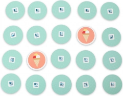 Lizike, sladoledi, bonboni in krofi – pestri motivi pritegnejo pozornost in pomagajo pri hitrem prepoznavanju parov.