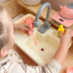 Otroci se zlahka igrajo kuharje in pomočnike v gospodinjstvu: strežejo, režejo, pomivajo in pospravljajo. Tako si na nevsiljiv način osvojijo osnove higiene in ekološki pristop k vodi, medtem ko starši cenijo bolj pospravljen igralni kotiček.