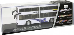 Razveselite male ljubitelje akcije s stilskim dvonadstropnim policijskim avtobusom. Zahvaljujoč navijalnemu pull-back pogonu se avtobus po navijanju sam požene, medtem ko svetlobni in zvočni učinki igri dodajo realistično atmosfero. Bel dizajn z modrimi detajli, napisom POLICE in emblemi deluje verodostojno kot pravo službeno vozilo.