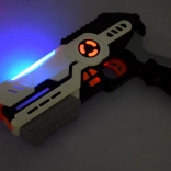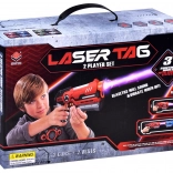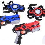 Set za laser tag prinaša moderno, varno in dinamično igro brez pravih izstrelkov – zadetki se registrirajo z infrardečo svetlobo. Orožja imajo futurističen dizajn, udobno upravljanje, izbiro ekipe z enim gumbom in tri tipe orožja z različnim zvokom, kadenco in odvzetimi življenji. Jopič enostavno prilagodite z nastavljivimi trakovi, parjenje s pištolo pa zlahka obvladajo tudi otroci.