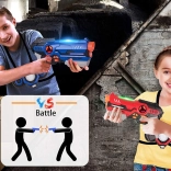Uživajte v akcijski zabavi doma in na prostem s kompletnim setom za 2 igralca. Vsak igralec dobi lasersko pištolo in tarčni jopič s števcem življenj. Enostavno parjenje, izbira ekipe (4 barve) in tipa orožja, realistični zvoki, luči in vibracije ob zadetku ter doseg do 40 m zagotavljajo napeto in hkrati varno igro brez nabojev.