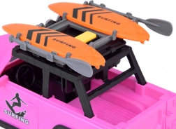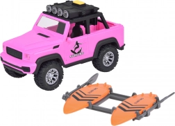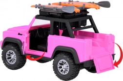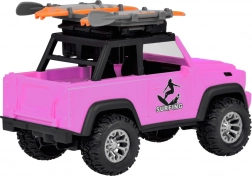 Slogoven rožnati terenski avto za male pustolovce prinaša svetlobne in zvočne učinke, odpirajoča se vrata, nagibni pokrov prtljažnika in velika gumijasta kolesa z izrazitim profilom. Na strehi je prtljažnik z dvema deskama za surfanje in svetlobni panel za še bolj realistično igro.