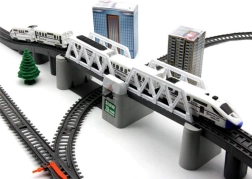 Električni osebni vlak je idealna zabava za male strojevodje. Na progi dolgi 914 cm lahko otroci doživijo neskončno vožnjo polno presenečenj. Dvižni most lahko dvignete s pritiskom na gumb, kar povečuje interaktivnost igre. Sprednja luč lokomotive, ki sveti med vožnjo, doda realistično noto.