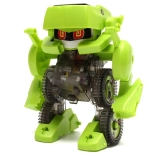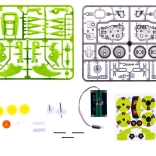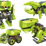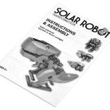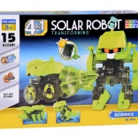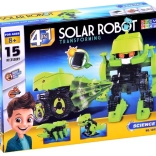 Vključeni deli: plastični deli za sestavljanje robota, sončni panel, motor, plastične oči, nalepke in slikovna navodila.