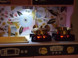 Ta kuhinja izstopa z retro dizajnom s cvetličnim vzorcem, ki se odlično poda v otroško sobo in prinaša edinstven slog.