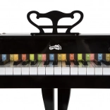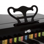 Komplet vključuje stabilen stolček, stojalo za note in pesmarico – otrok lahko takoj začne odkrivati svet melodij. Klavir je zasnovan kot igrača za zabavno učenje in igrivo motivacijo, ne kot polnovreden glasbeni instrument.