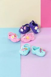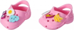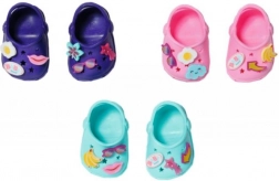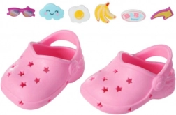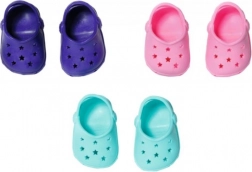 Prisrčni gumijasti sandali za punčko BABY born 43 cm v treh barvnih različicah bodo razveselili vsako malo stilistko. Zahvaljujoč odstranljivim priponkam lahko otroci čevljčke preprosto prilagodijo in spreminjajo njihov videz. Zelo lahki, udobni in idealni za poletne dogodivščine, za »k vodi« in na peskovnik. Primerno za otroke od 3 let.