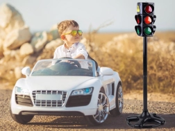 Realističen otroški semafor z rdečo, oranžno in zeleno lučjo ter zvočnimi efekti otroke na zabaven način uči cestnoprometnih pravil. Odličen za igro z poganjalci in avtomobilčki na dvorišču ali v otroški sobi, kjer spodbuja varno vedenje na prehodu za pešce in razvoj prometne vzgoje.