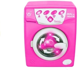 Odlična zabava, realističen in dovršeno izdelan pralni stroj za malo gospodinjo. Zdaj bo vsako dekle lahko poskrbelo za oblačila svojih najljubših punčk in medvedkov. Dovolj je, da v pralni stroj vstavite oblačila, izberete pravi program (pranje, izpiranje, centrifugiranje) in končano!