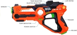 Laser Tag je timska igra, ki združuje strategijo in zabavo. Igralci izberejo svojo ekipo glede na barvo signalnih luči na pištoli in poskušajo zadeti nasprotnika. Za izbiro ekipe uporabite preklopnik TEAM SELECTOR in orožje preklopnikom BLASTER SELECTOR. Set vključuje dve pištoli v izrazitih barvah, ki simulirajo streljanje z različnimi načini in prednastavljenimi 'življenji'.