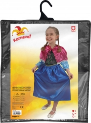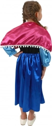 Otroški kostum princese, navdihnjen z priljubljenim pravljičnim svetom, popestri vsako pustovanje, rojstnodnevno zabavo ali domače preoblačenje. Zgornji del krasijo nežen potisk in elegantni detajli, krilo v modrem tonu lepo pada, rožnat plašč pa doda opravi čaroben pridih.