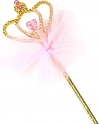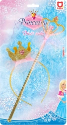 Komplet naglavnega traku s krono in čarobne paličice pričara nasmeh vsaki mali princesi. Zaradi udobnega naglavnega traku se lepo nosi tudi dlje časa, lahka paličica pa odlično dopolni pravljični kostum.