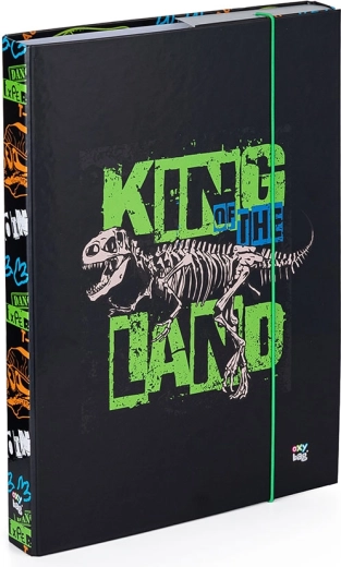 Stilska škatla za zvezke z motivom dinozavra je idealna za vsakodnevno uporabo v šoli in doma. Laminirana površina zagotavlja zaščito pred poškodbami in enostavno vzdrževanje, medtem ko močna elastika vse varno drži skupaj.