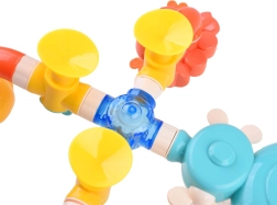 Igrača je opremljena z močnimi priseski za stabilno pritrditev na gladko površino (ploščice, kad). Varni, pisani plastični elementi spodbujajo raziskovanje ter razvijajo fino motoriko, logično razmišljanje in ustvarjalnost.