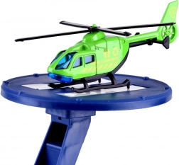 - Celovit set: 2 kovinska avtomobilčka, helikopter, 7 prometnih znakov, nalepke, mestna podloga.