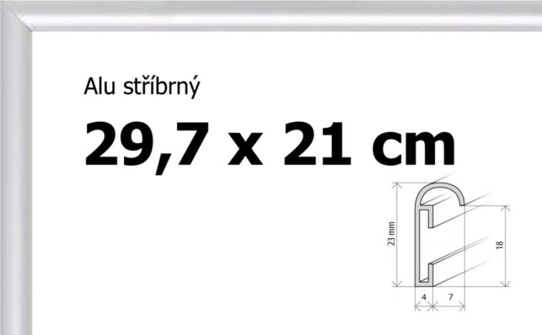 Ta aluminijast okvir je idealen za uokvirjanje fotografij, plakatov in drugih dokumentov. Opremljen je s steklom debeline 2 mm z brušenimi robovi ter trdnim hrbtnim kartonom s sponkami. Okvir je združljiv s formatom A4 in ima profilni rob 23 mm. Okvir je mogoče preprosto namestiti pokončno ali ležeče.