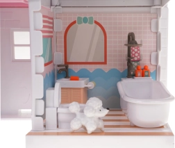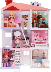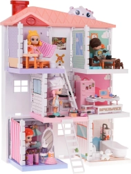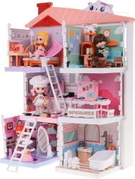 Hiška za punčke je čudež poln barv in podrobnosti, ki očara vsakega otroka. V pritličju najdete garderobo in kopalnico, medtem ko v prvem in drugem nadstropju čakajo kuhinja, dnevna soba in spalnica, vse opremljeno s stilnim pohištvom in dodatki. Bogato opremljeni interierji spodbujajo otroke k razvijanju domišljije in kreativnosti.