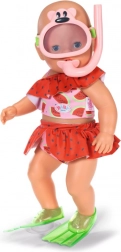 Pripravite svojo punčko BABY born na poletne vodne dogodivščine s stilskim kompletom za snorklanje. Set vsebuje dvodeleni kopalni komplet z ljubkimi volančki, potapljaška očala s snorklom in zelene plavuti – vse usklajeno v igrivih barvah za realistične vodne igre in ustvarjalno igro vlog.