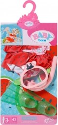 Dvodeleni kopalni komplet z volančki daje punčki poletni videz in se odlično kombinira z drugimi dodatki BABY born.