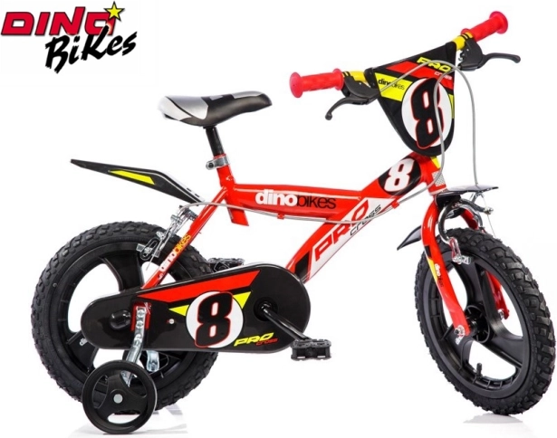 Otroško kolo Dino Bikes 16" v privlačni rdeči barvi je idealna izbira za majhne kolesarje. Varno in stabilno, ponuja pomožna kolesca in enostavno upravljanje z zavorami.