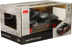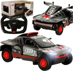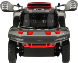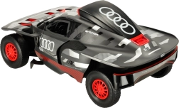 Model Audi RS Q e-tron v merilu 1:14 izstopa s podrobnostmi, kot so linije karoserije, logo Audi in prednja svetila.