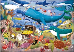 Sestavljanka Educa z motivom Podvodni svet otrokom prinaša zabavno učenje in sprostitev. Zaradi večjih kosov jo je enostavno sestavljati in je odlična za prve korake s sestavljankami ter za skupne družinske trenutke. Velik format po sestavi (pribl. 68 × 48 cm) zagotovi, da izstopajo vse podrobnosti barvitih morskih živali.