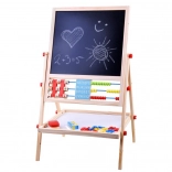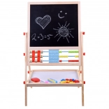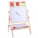 Ta univerzalna tabla otrokom ponuja zabaven in izobraževalen način za vajo pisanja črk, reševanja enostavnih nalog ter razvoj likovnih spretnosti. Ena stran je kredna za risanje in pisanje s kredo, druga je magnetna za delo z magnetki in markerjem. Zahvaljujoč bogatemu priboru si otroci zlahka osvojijo osnove abecede in računanja.