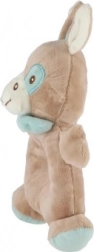 Zaradi kompaktne velikosti 18 cm se igrača zlahka prilega vozičku, torbi ali otroškim rokam. Mehak površinski material je prijeten na dotik in varen za nežno grizljanje, zato bo osliček postal priljubljen spremljevalec pri igri in uspavanju.