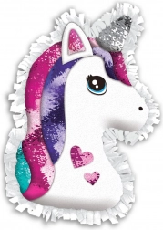 Ustvarite svojega prisrčnega samoroga brez igle – dovolj je vezanje vozličkov! Predrezani deli iz flisa, filca in dvostranskih bleščic so pripravljeni za sestavljanje in okraševanje. Bleščice menjajo barvo z dotikom roke, enostavna navodila pa vas vodijo korak za korakom. Odlična ustvarjalna zabava za otroke od 6 let.