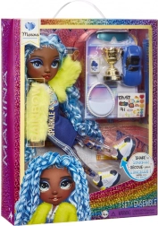 Serija Sparkle & Shine prinaša drugačno mavrico, ki se pojavi le ponoči – redko, edinstveno in osupljivo. Punčka Marina iz kolekcije RAINBOW HIGH navduši z očarljivim videzom, izrazitim stilom in nenavadnim elementom: nogami, napolnjenimi z bleščicami, ki ustvarjajo hipnotičen učinek ob vsakem gibu.