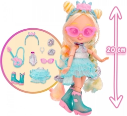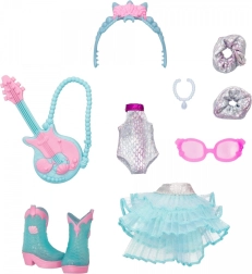 Stilska lutka srednje velikosti z dodatki, ki vključujejo stilski trak za lase in čevlje, je idealna za otroke, ki obožujejo modno in glasbeno zabavo. Priložena je z več kot 9 presenečenji, kar daje otrokom možnost odkrivanja različnih kombinacij ter spodbuja njihovo domišljijo in kreativnost.