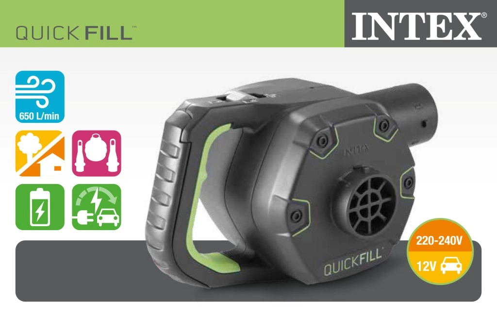 Praktična električna črpalka za hitro napihovanje in izpihovanje z napajanjem iz omrežja 220–240 V ali iz avtomobilskega vžigalnika 12 V. Priložene so 3 univerzalne nastavke za široko združljivost. Idealna za vzmetnice, bazene, čolne in igrače – udobna za uporabo doma in na poti.