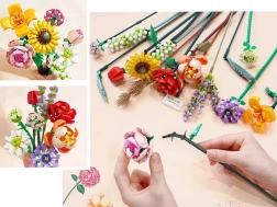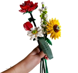 Ta ustvarjalni gradbeni komplet cvetov prinaša vse, kar potrebujete za izdelavo impresivnega šopka dolžine približno 31,5 cm. Deli v živahnih barvah in premišljenih oblikah omogočajo sestavljanje različnih vrst cvetov in listov ter ustvarjanje edinstvene dekoracije za vazo, mizo ali polico.