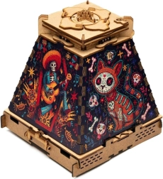 Spremenite svojo ikonično uganko Piramida Sonca v barvit spektakel s tematsko razširitvijo Dan mrtvih. Natančno izrezani leseni koščki in izrazit tisk ustvarijo novo plast, ki poudari dizajn celotne piramide in jo spremeni v izstopajočo dekoracijo. Razširitev je namenjena izključno videzu – ne posega v rešitev izvirne uganke.