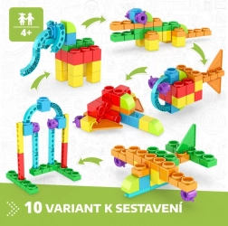 Sestavite živalice, stroje in vozila iz velikih, barvitih in enostavno spojljivih delov. Raznolikost spodbuja domišljijo in fino motoriko.