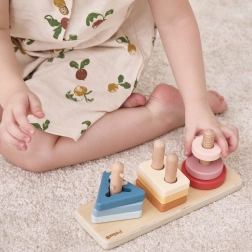 Leseni koščki in količki učijo prepoznavati oblike in barve, podpirajo prostorsko razmišljanje ter logično razvrščanje. Idealno za prve korake v geometriji.