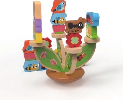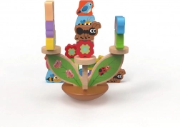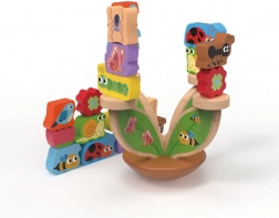 Lesena balančna igra Travnik spremeni učenje v zabavo. Otroci izmenično polagajo pisane delčke na stabilno osnovo v obliki listov in poskušajo ohraniti ves travnik v ravnovesju. Igra naravno razvija fino motoriko, koordinacijo oko–roka in logično razmišljanje, hkrati pa trenira potrpežljivost in zbranost.