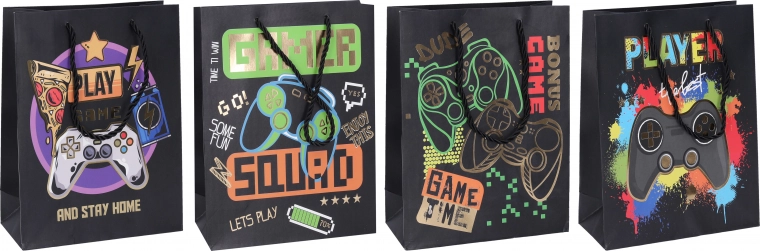 Lepa darilna vrečka, primerna za vsako priložnost, na voljo v srednji velikosti in štirih različnih dizajnih. Popolna izbira za otroške zabave in posebna darila.