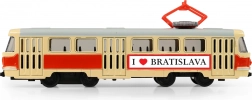 Podroben tisk »I ♥ BRATISLAVA« in ikonična barvna shema zvesto spominjata na prave voze T3.