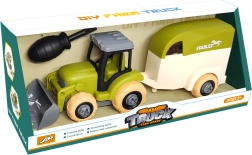 Zabaven gradbeni set za male kmete: vijačni traktor s prikolico za konja in otroškim izvijačem spodbuja fino motoriko, tehnično spretnost in kreativno razmišljanje. Robustna plastična izvedba, možnost razstaviti in ponovno sestaviti, del kompleta je tudi konjiček za še bolj realistično igro.