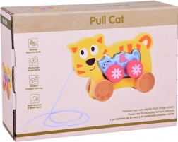 Ta lesena vlečna mačja družinica je idealen spremljevalec za prve korake. Večja muca ima v telesu odprtino za lažji prijem, pritrjeno vrvico in stabilna kolesca. Manjši mucek zvesto sledi, kar otrokom prinaša veselje do gibanja in krepi njihovo naravno radovednost.