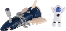 - Deli za sestavljanje (raketa / modul), figurica astronavta, plastičen izvijač, ključ