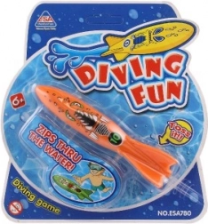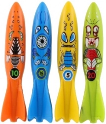 Lahko in trpežno potapljaško torpedo je zasnovano tako, da ob metu v vodo enakomerno tone in je zaradi živahnih barv dobro vidno. Otroke motivira k izboljševanju plavalnih veščin, vadbi potapljanja na dih in koordinacije gibov.
