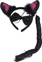 Set "črna mačka" je popoln tako za puste, rojstnodnevne zabave kot tudi za tematske zabave. Zaradi svojega preprostega dizajna je primeren za otroke od 6. leta dalje. Vsak element seta je zasnovan z mislijo na udobje in varnost – prilagodljiv obroč se prilega različnim velikostim glave, medtem ko metuljček in rep zagotavljata udobno nošenje tudi dlje časa. Črna barva preobleki doda brezčasen in vsestranski videz, ki ga zlahka uskladite z različnimi stili oblačil.