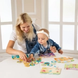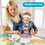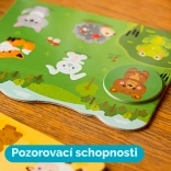 Odličen trenažer za razvoj pozornosti, spomina in fine motorike. Vsi deli imajo zaobljene robove za varno uporabo. Uživajte v igri doma ali na poti zahvaljujoč praktični škatli za shranjevanje z ročajem.